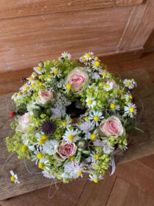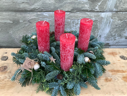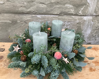 Freitag 28. Nov. 13.30 – 16.30 Samstag 29. Nov. 09.00 – 12.00 Bitte bei der Anmeldung gewünschtes Datum vermerken. Mit verschiedenen Zweigen kreieren sie einen Adventskranz. Die Zweige werden in einen Oasisring gesteckt, so dass der Kranz lange hält und nicht die Nadeln verliert. Zur Dekoration steht verschiedenes Material zur Verfügung. Die Kerzen können selber mitgebracht, oder bei mir bestellt werden.