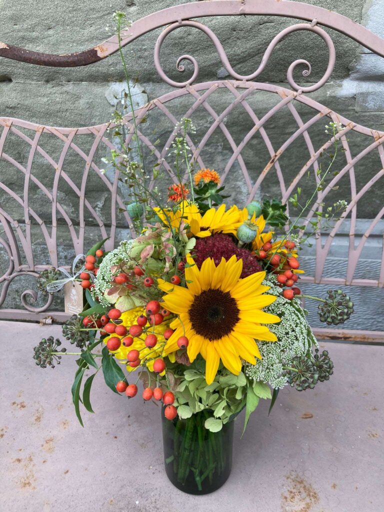 Gerne möchten wir unsere Freude an der Natur und unser floristisches Wissen an Interessierte weitergeben. Wir finden es wichtig, dass wir uns in der heutigen schnelllebigen Zeit vermehrt der Natur zuwenden und die Fähigkeit wieder erlangen, auch ihre kleinen Schönheiten wahrzunehmen. Deshalb möchten wir in unseren Kursen nicht „nur“ zu floristischen Werkstücken anleiten, sondern je nach Jahreszeit und Bedürfnissen auch gezielt mit den KursteilnehmerInnen draussen einige Werkstoffe sammeln/schneiden (ergänzend zum gekauften Blumenangebot).