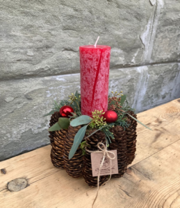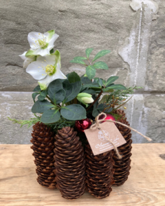 Sie gestalten ein Zapfengesteck. Ein Gefäss wird mit Tannzapfen ummantelt und in die Mitte wird entweder eine Kerze gesteckt oder eine kleine Christrose gepflanzt, zum Schluss wird alles geschmückt. Diese wunderbaren Werkstücke können immer wieder neu bepflanzt oder geschmückt werden. Freitag 09.00 – 12.00